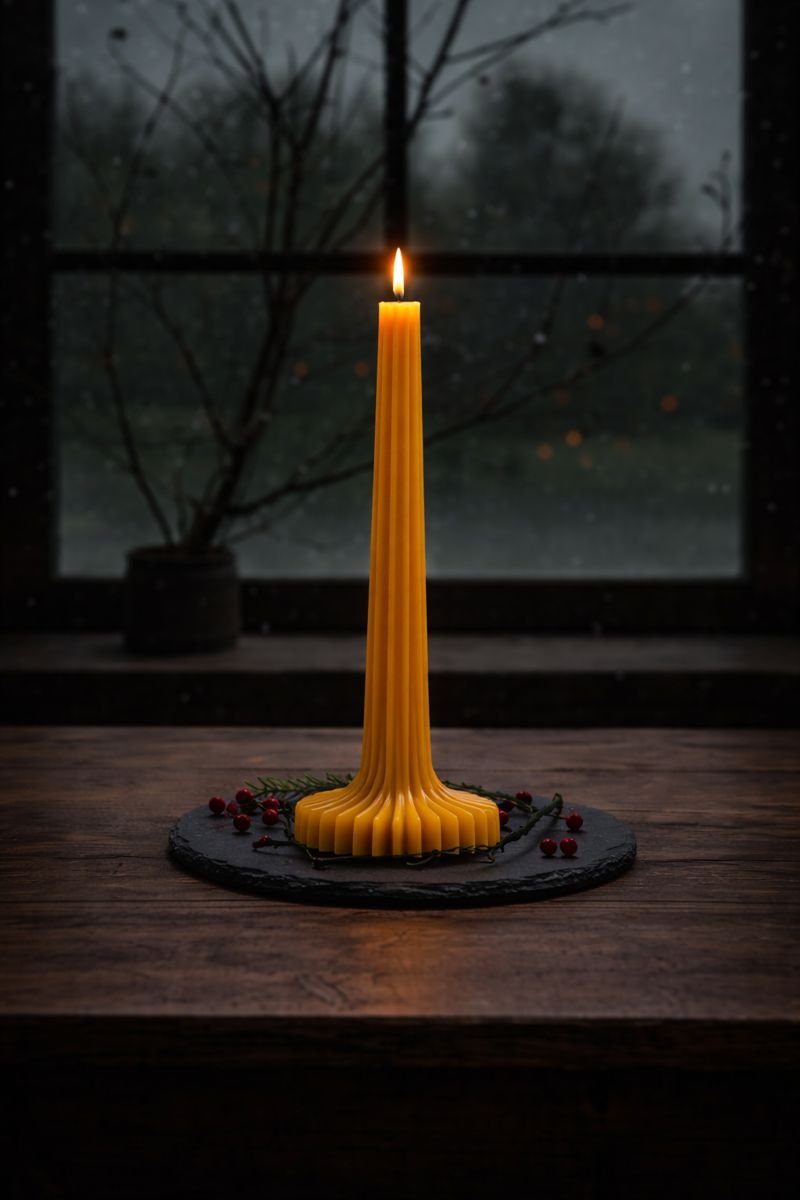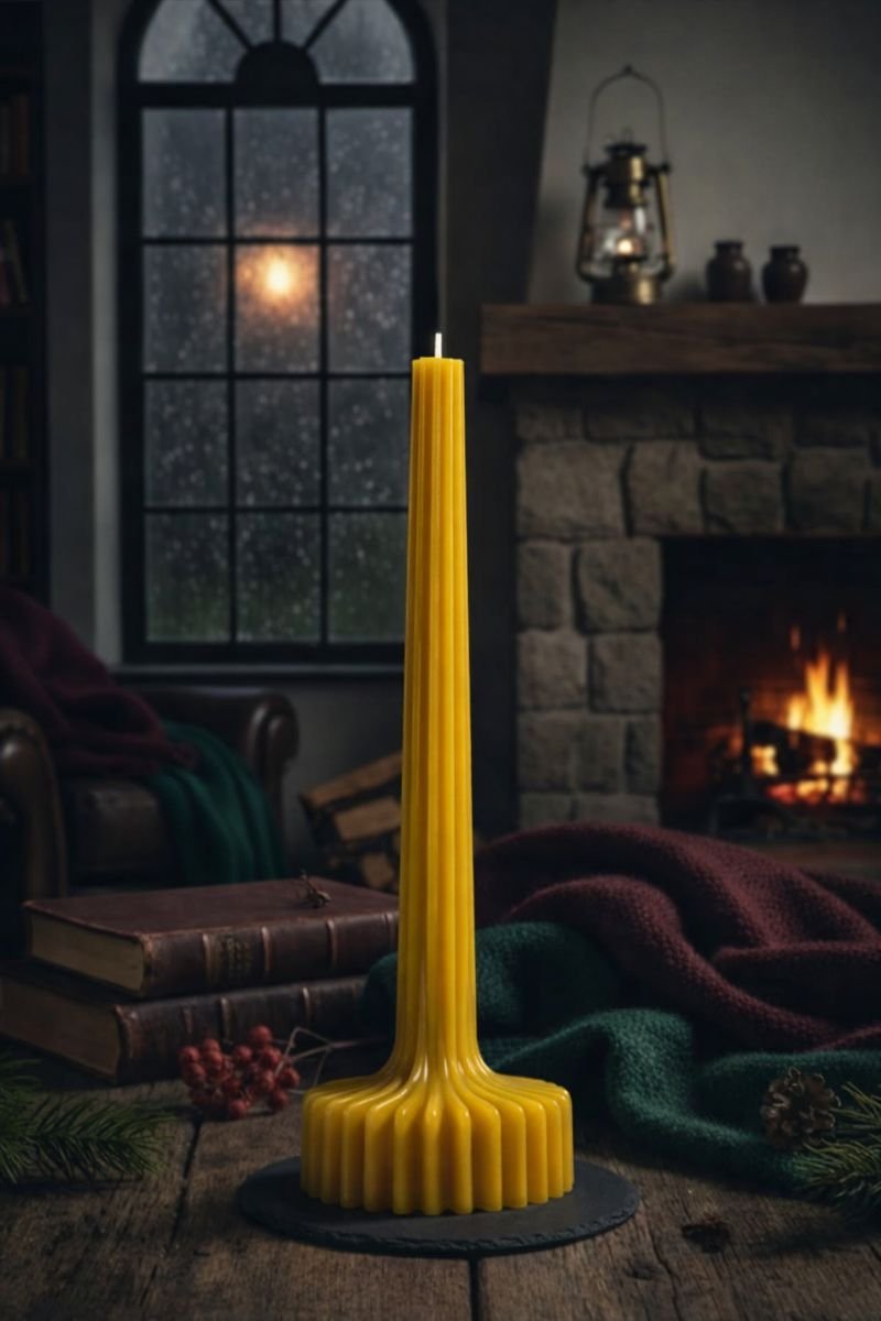 Inspired by classical forms, The Column brings quiet structure and elegance to the home. Its tall silhouette casts a focused, refined glow—elevating dining tables, mantels, and intentional gatherings. Crafted from 100% pure beeswax, it burns cleanly while making a subtle architectural statement.